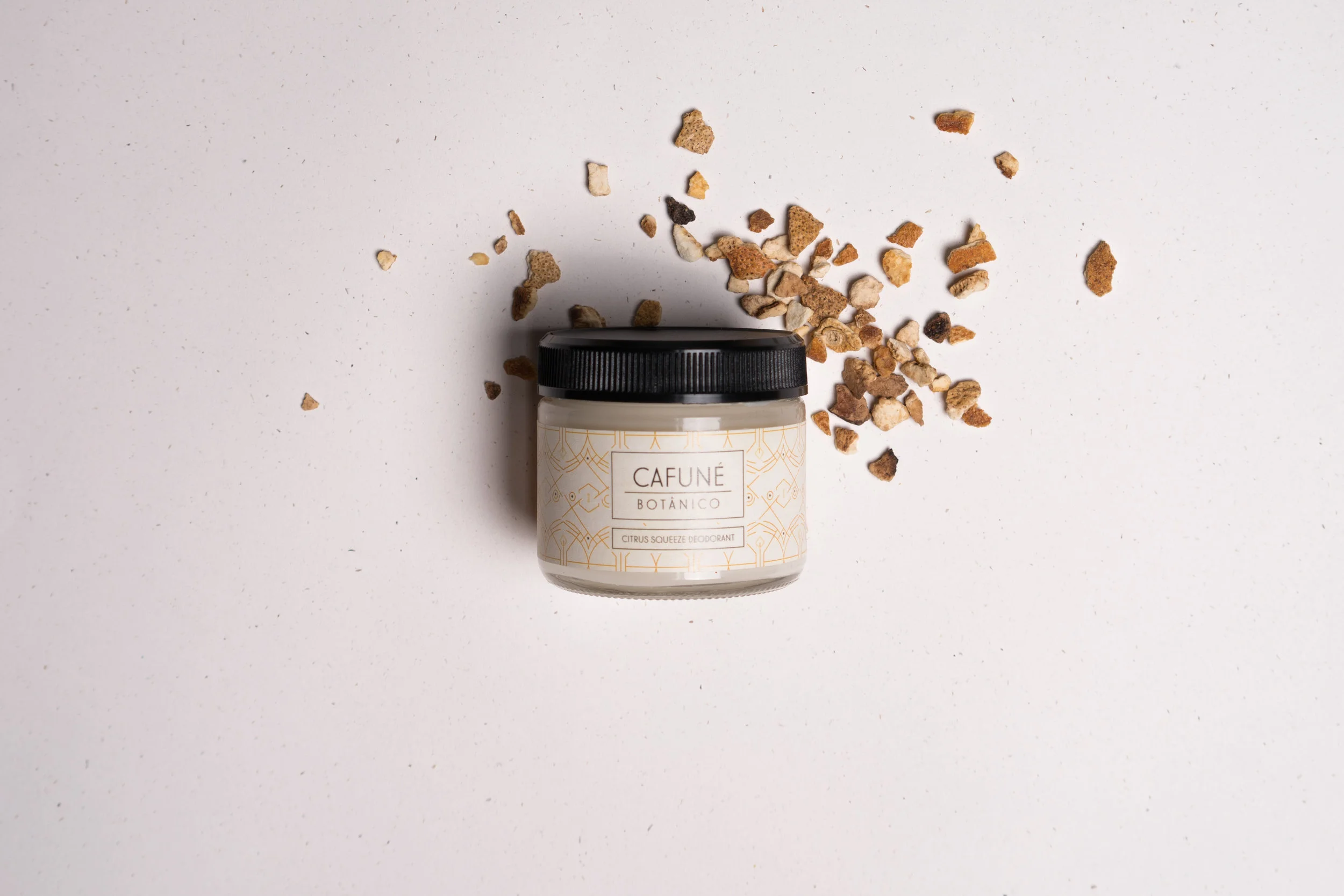 Brand conception and layout design for CAFUNE BOTANICO, an organic skin care line. These labels all represent different characteristics and qualities of the products they are paired with.